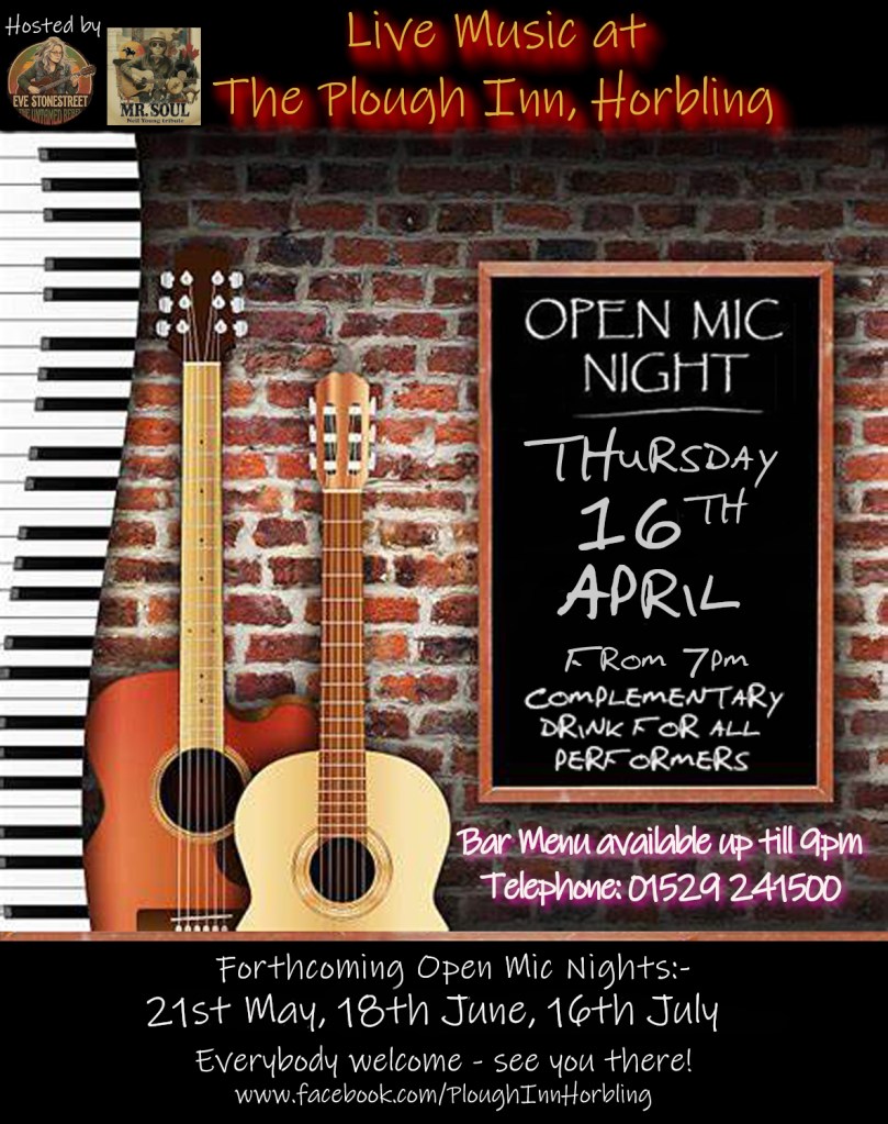 I’ll be playing next at the open mic at the plough inn, in horbling on thursday 16th APRIL. expect a couple of neil songs! 🙂